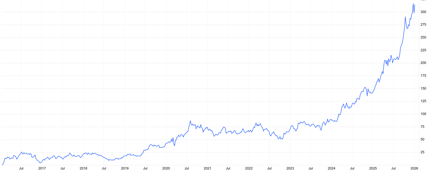 Come si vede dal grafico ora l'oro ha raggiunto il suo massimo valore da quando è quotato.